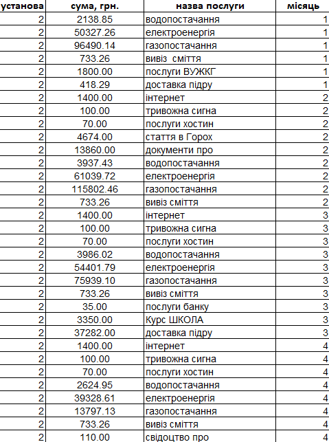 Прихід по балансових рахунках, послуги за січень-травень (квітень) 2025 року.