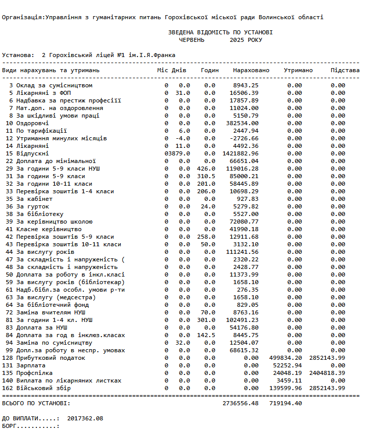 Прихід по балансових рахунках, послуги за червень-грудень 2025 року